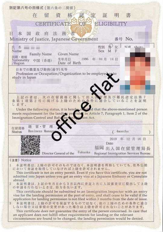 4か月ビザの取得後、日本で事務所を契約し会社を設立します。