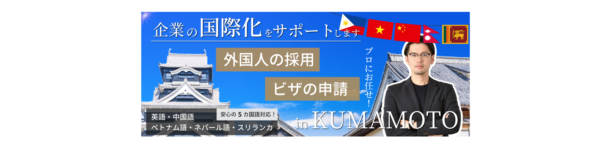 外国人雇用の手続きをはじめ、就労ビザ、配偶者ビザ、経営管理ビザ、永住ビザ、帰化申請の相談・サポートは、行政書士法人アクティスが運営する『熊本ビザ申請サポート』へお任せください。